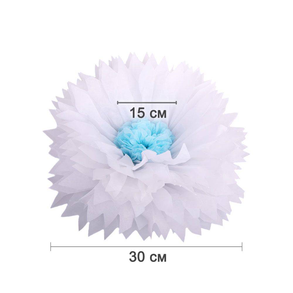 Бумажный цветок 30 см белый+голубой