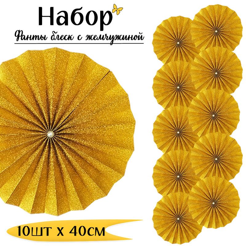 Фанты блеск с жемчужиной НАБОР 10шт х 40см, золото