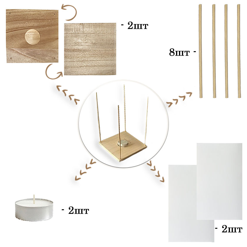 Фонарик состоит из деревянной основы, стоек и бумаги.