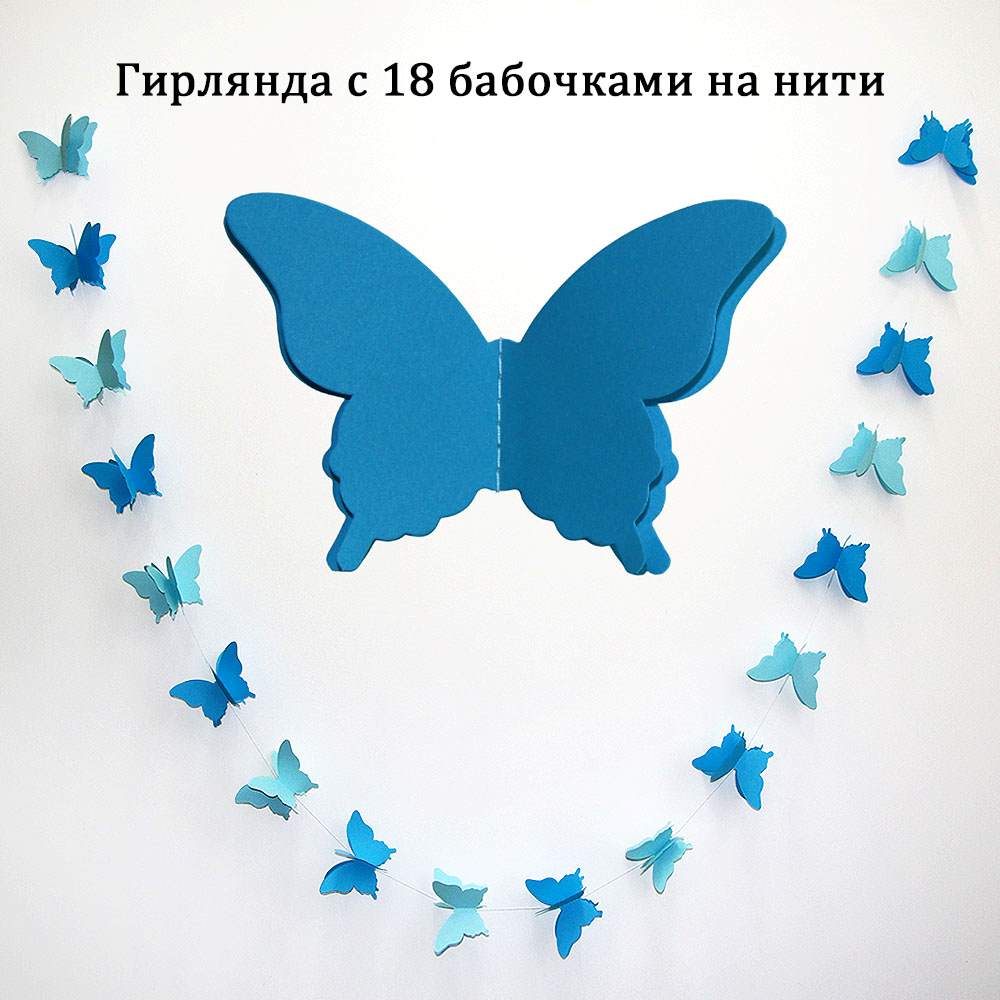 Расправьте крылья и создайте праздничное настроение. Гирлянда идеально подходит для украшения детских комнат, свадеб, окон, стен и фотозон. Объемные бабочки на нитке добавят нежности и легкости интерьеру.