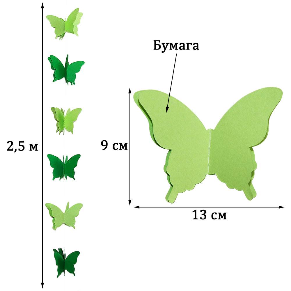 Гирлянда "Бабочки" 13х9см 2,5м, зеленый+салатовый