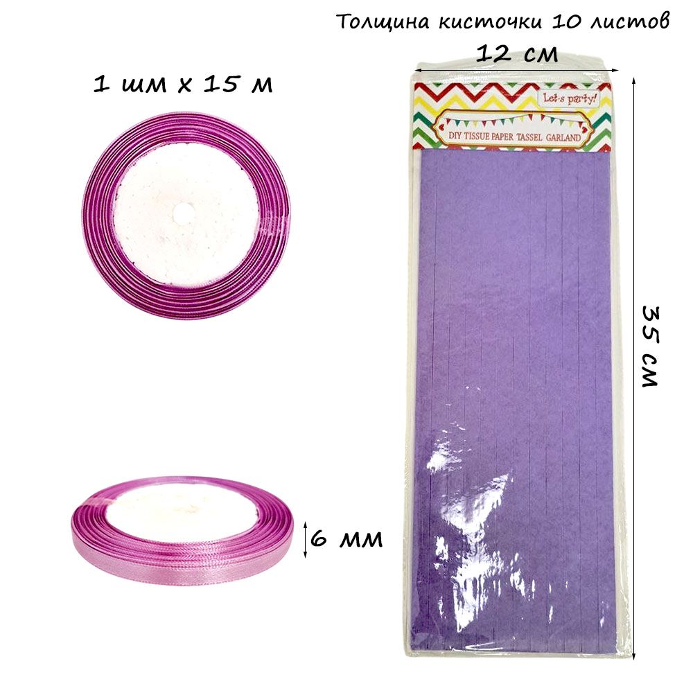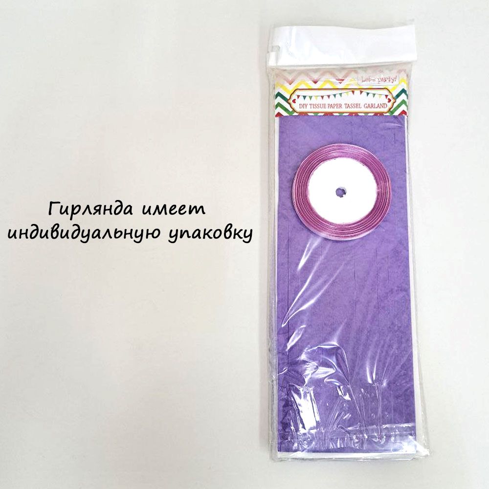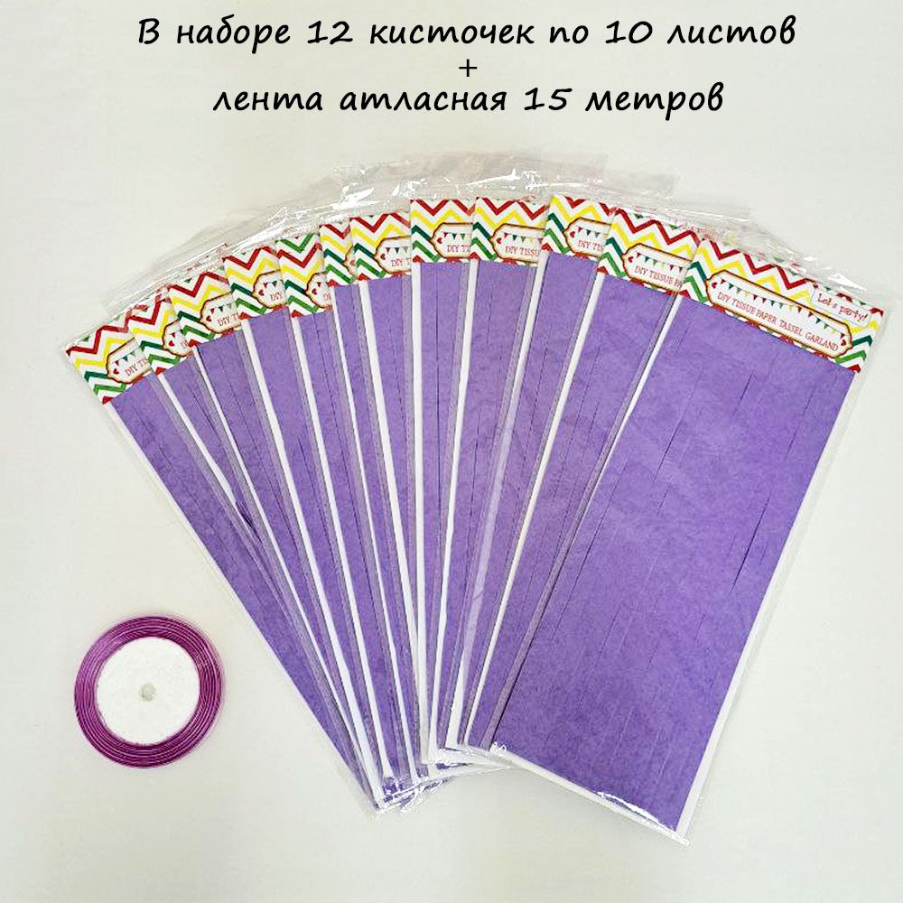 Гирлянда тассел 12 кисточек по 10 листов, светло-сиреневый