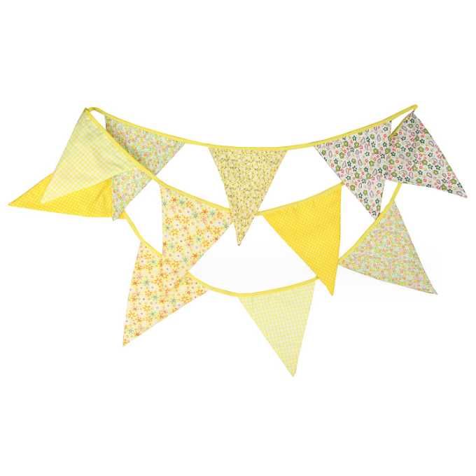 Гирлянда состоит из 12 флажков. Расстояние между флажками - 6 см, общая длина составляет 4 м.