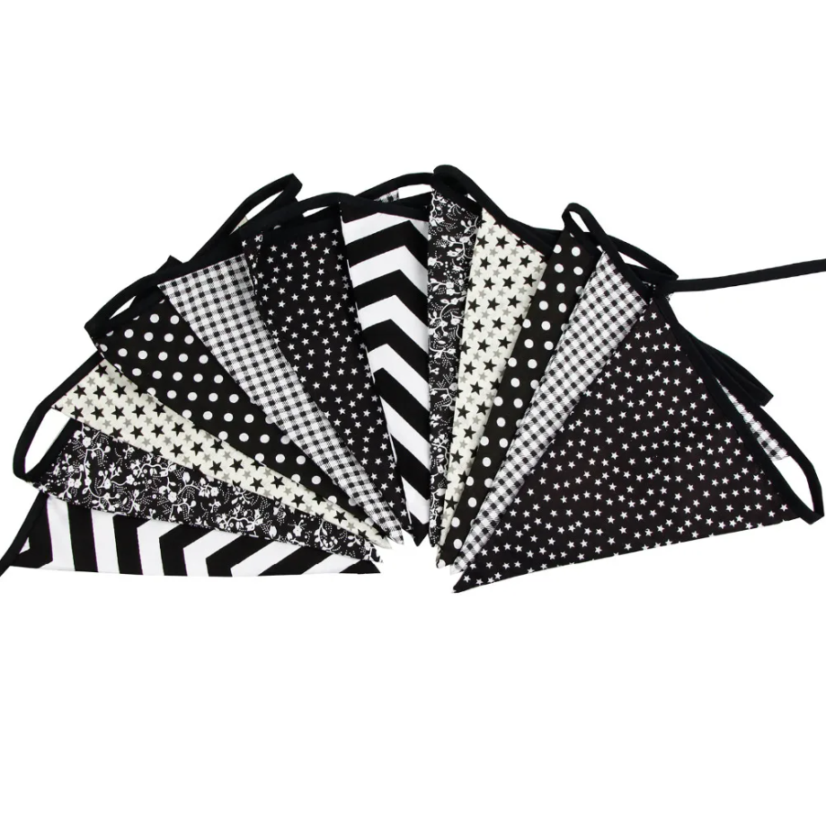 Гирлянда состоит из 12 флажков, расстояние между флажками 6 см, общая длина составляет 4 м.
