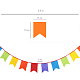Гирлянда состоит из 12 флажков, общая длина составляет 3,4 м, расстояние между флажками 3 см, длина матерчатых флажков 2,1 м, длина лямок с обеих сторон по 50 см