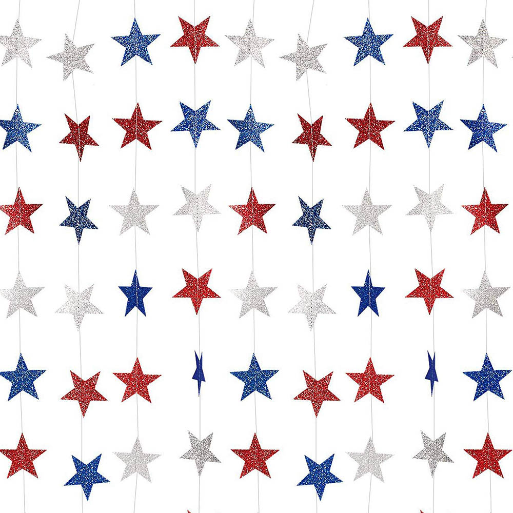 Гирлянда "Звезды" блеск/металлик 7 см х 4 м, триколор