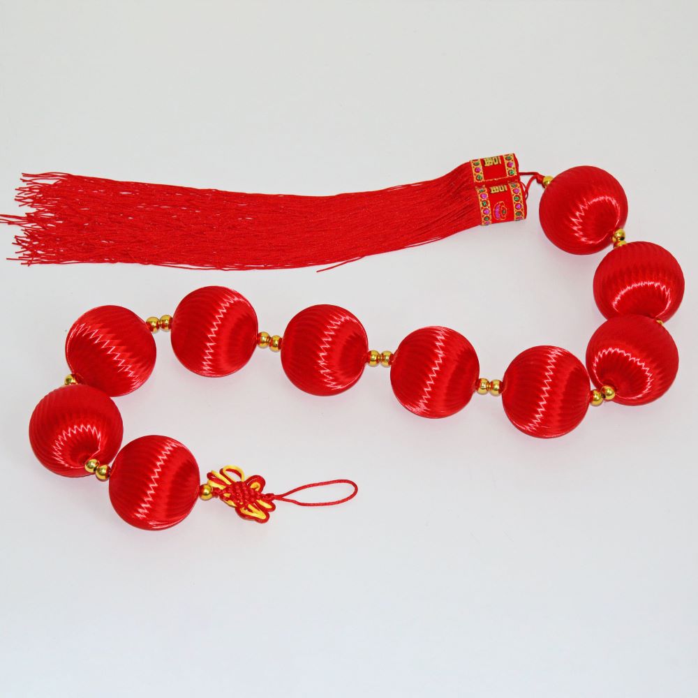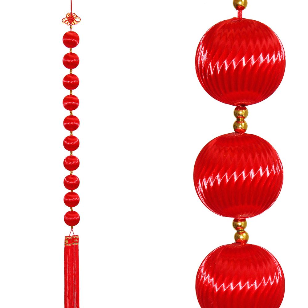 Коллекция подвесных шаров в традиционном китайском стиле. Легкие пластиковые шары плотно обвитые шелковыми нитями насыщенного красного цвета, создающими эффект мерцающего перелива при свете.