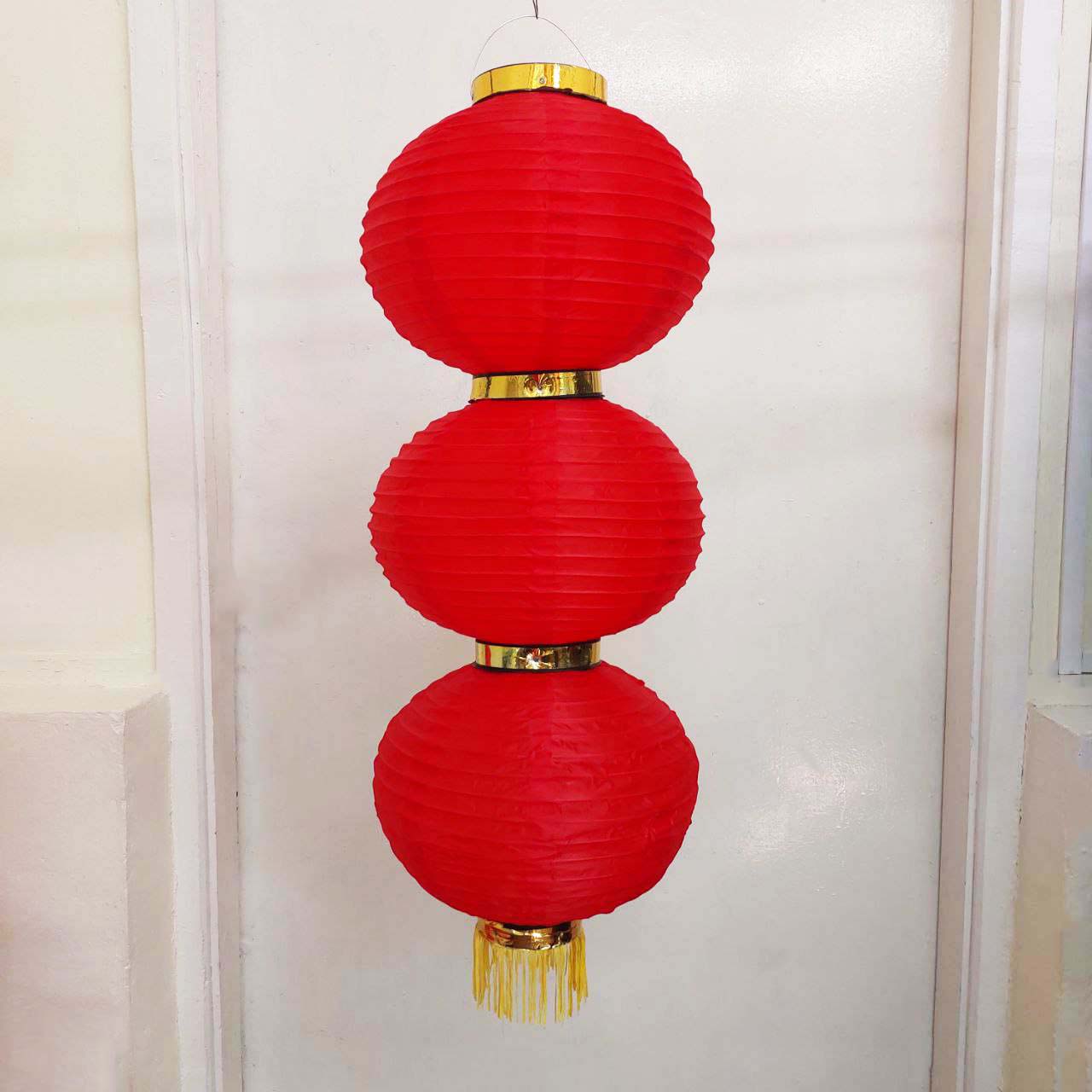 Круглый китайский фонарь состоит из трех ярусов диаметром 30 см каждый.