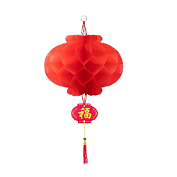 Китайский фонарь Цилиндр с надписью "Чайный" с бахромой 30х55 см, красный