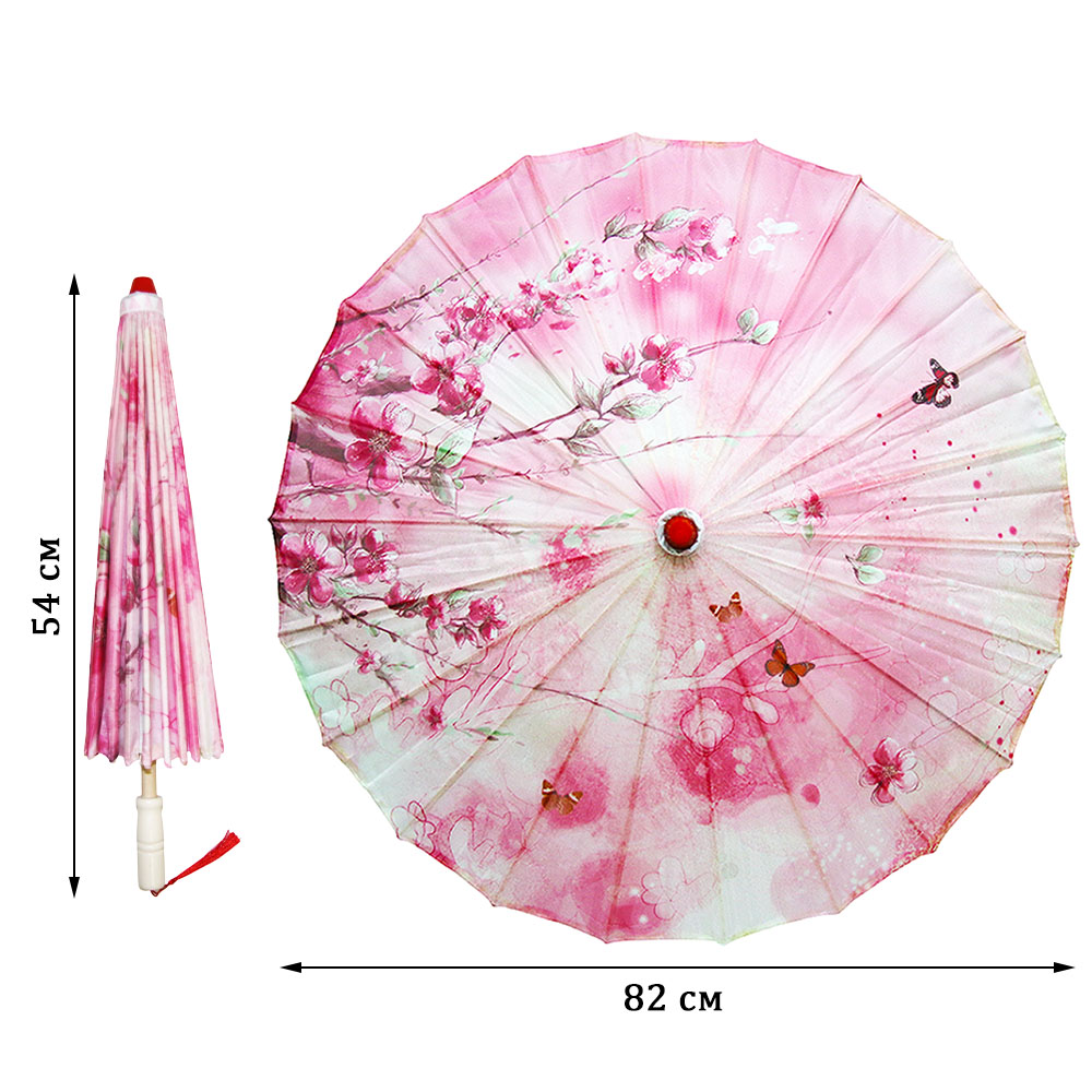 Китайские тканевые зонтики цветочные с кисточкой 82х54 см