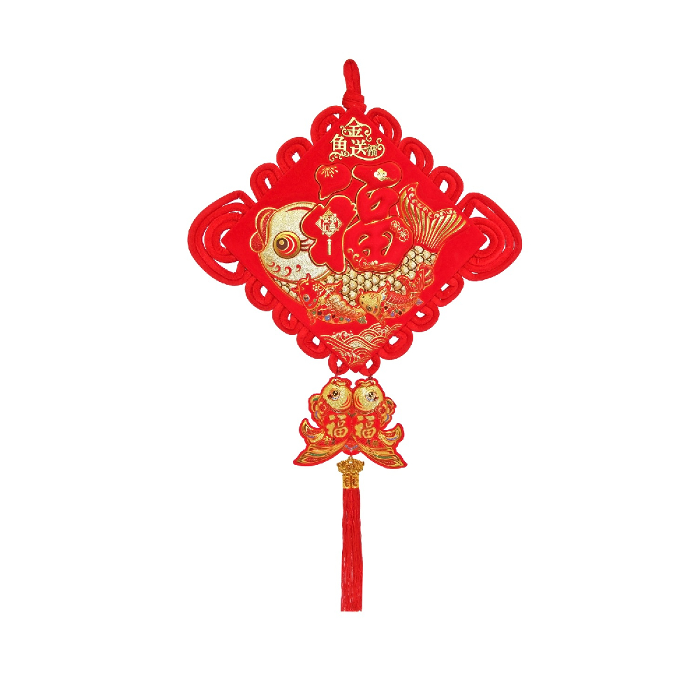 Традиционный китайский узел в форме ромба с символичным дизайном. Яркое сочетание красного бархата и золотых элементов создает эффектный акцент в интерьере.