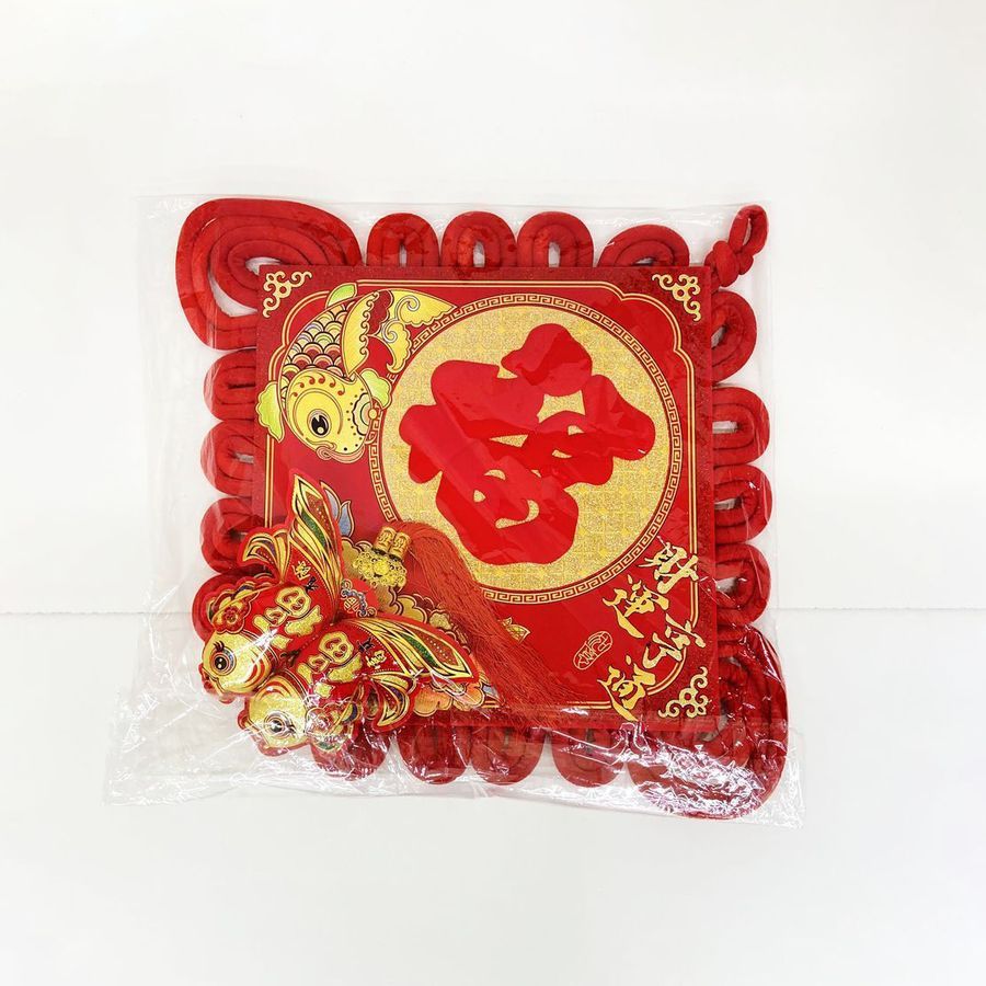 Традиционный китайский узел в форме ромба с символичным дизайном. Яркое сочетание красного бархата и золотых элементов создает эффектный акцент в интерьере.