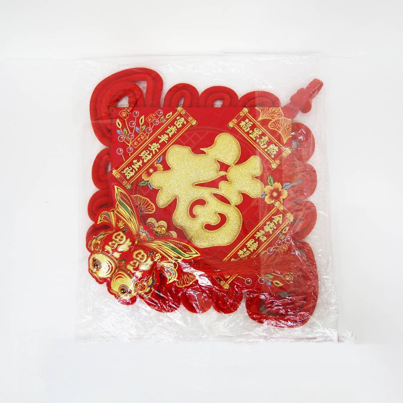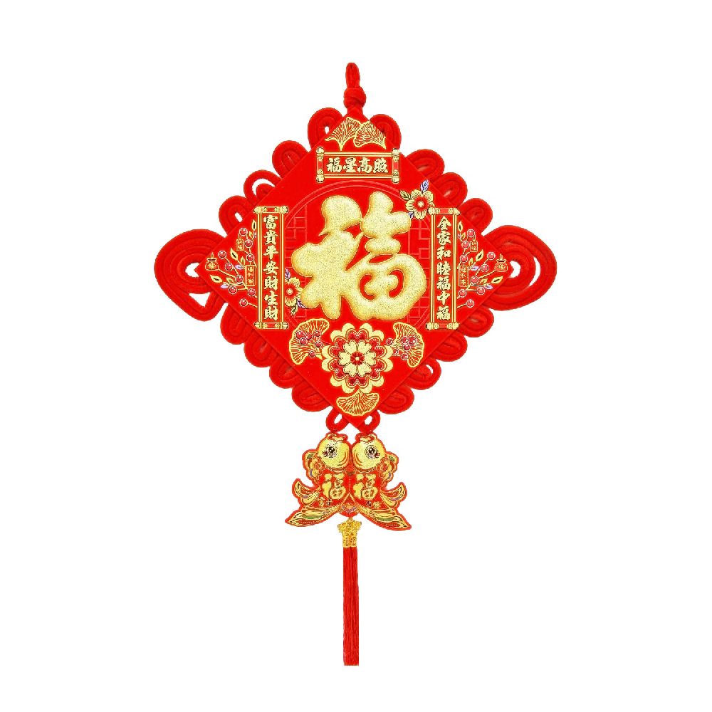 Традиционный китайский узел в форме ромба с символичным дизайном. Яркое сочетание красного бархата и золотых элементов создает эффектный акцент в интерьере.