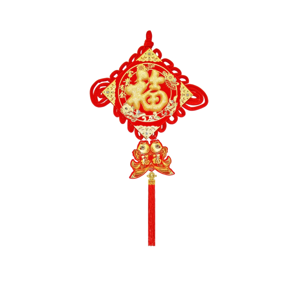 Традиционный китайский узел в форме ромба с символичным дизайном. Яркое сочетание красного бархата и золотых элементов создает эффектный акцент в интерьере.