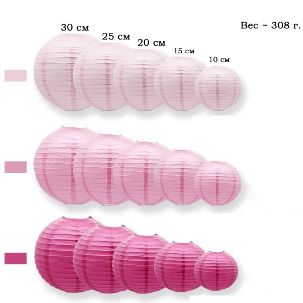 Набор подвесные фонарики 15 шт + леска, св.розовый+розовый+малиновый