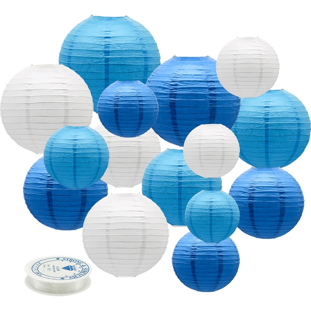 Набор подвесные фонарики 15 шт + леска, белый+синий+т.синий