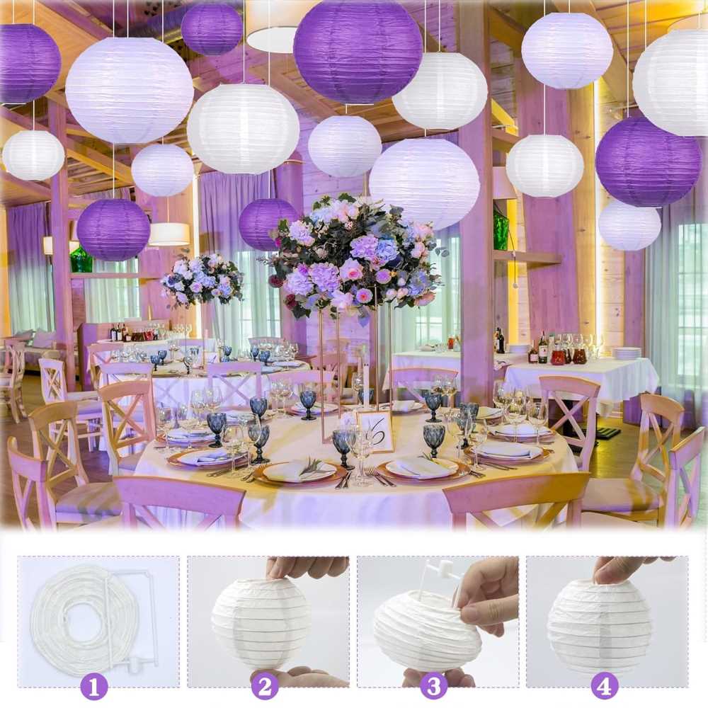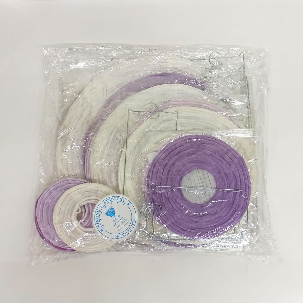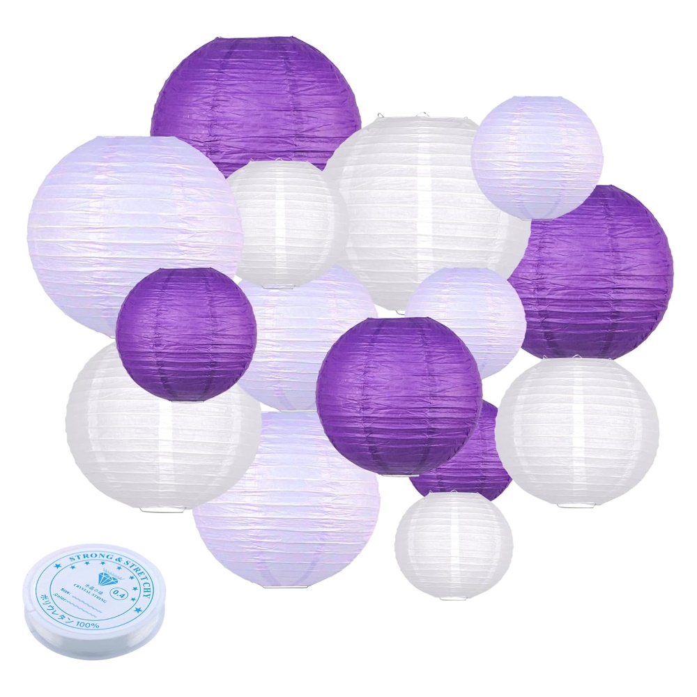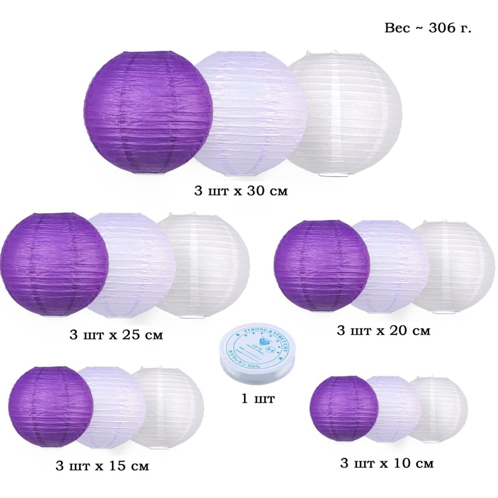Набор подвесные фонарики 15 шт + леска, белый+св.сиреневый+сиреневый