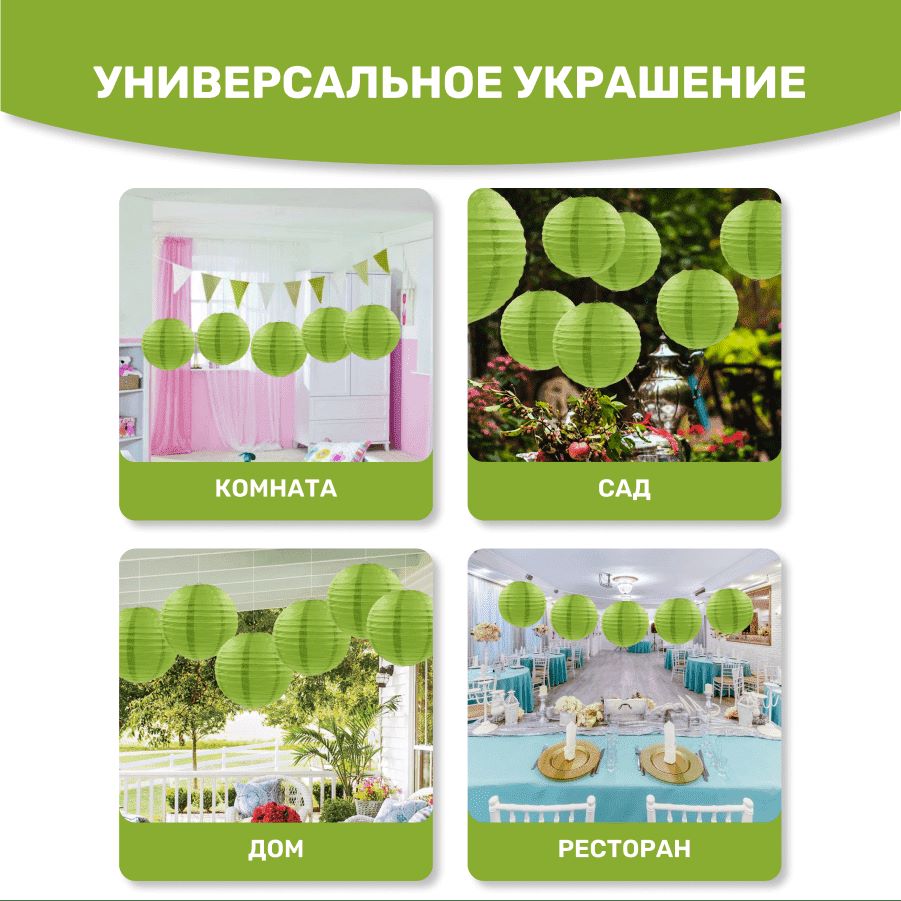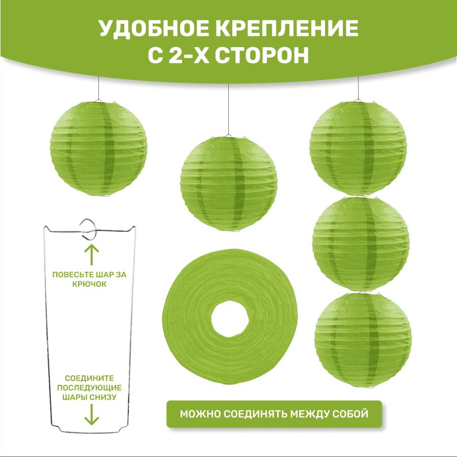 Комплект подвесные фонарики 30 см х 8 шт, темно-салатовый