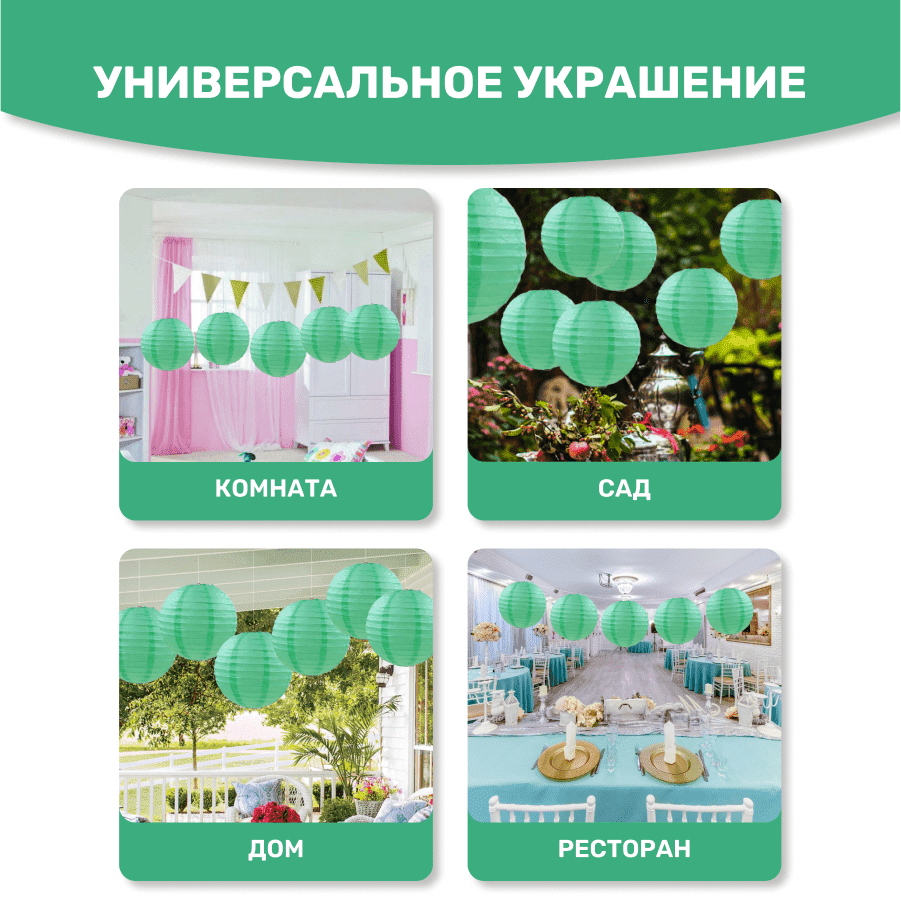 Комплект подвесные фонарики 35 см х 8 шт, мятный