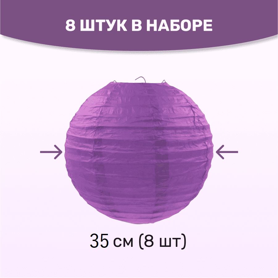 Комплект подвесные фонарики 35 см х 8 шт, сиреневый