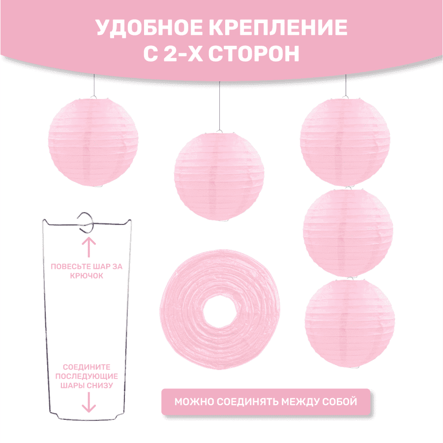 Комплект подвесные фонарики 40 см х 8 шт, розовый
