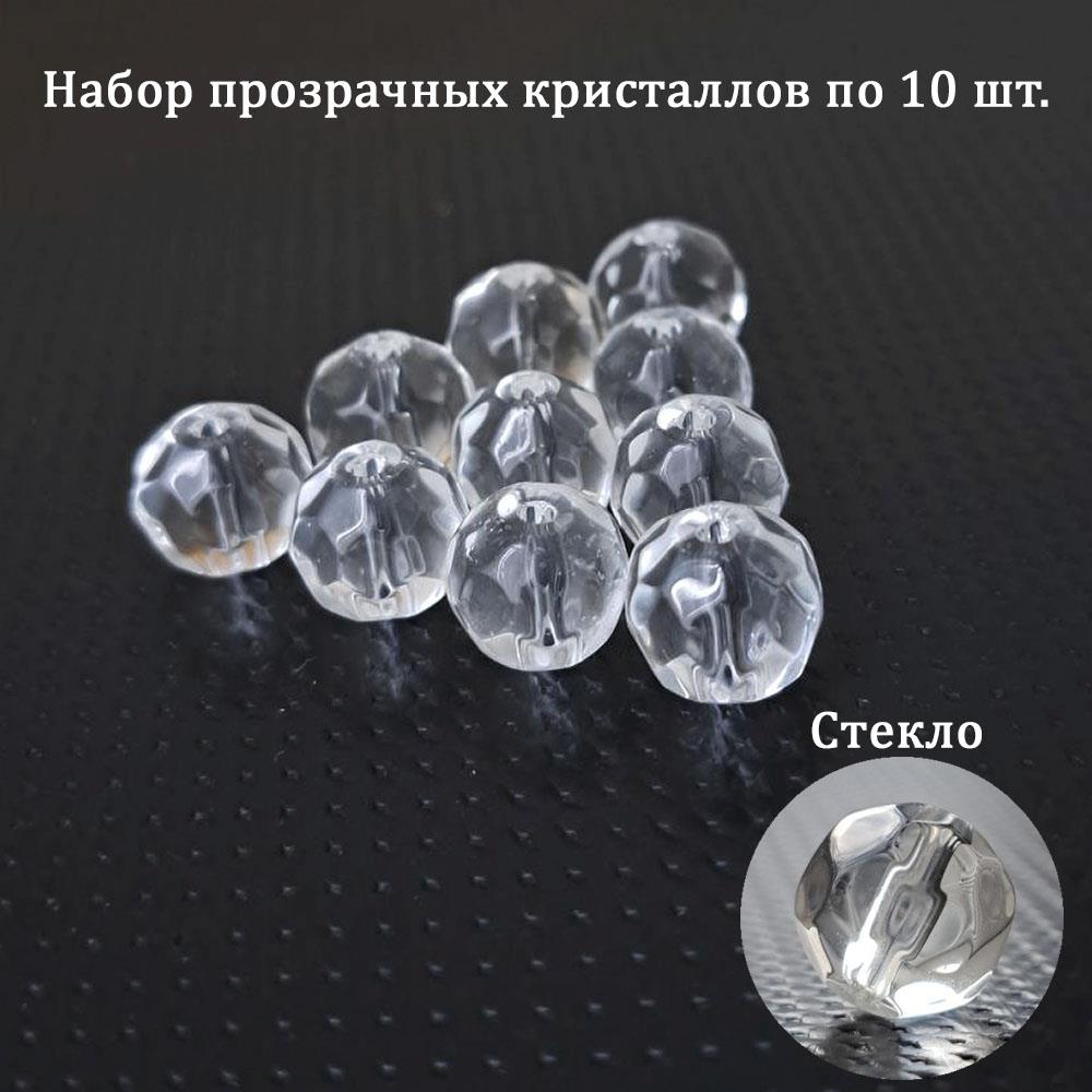 Набор прозрачных кристаллов "Граненый круг" 10 штук по 10 мм подойдет для творчества и оформления декора.