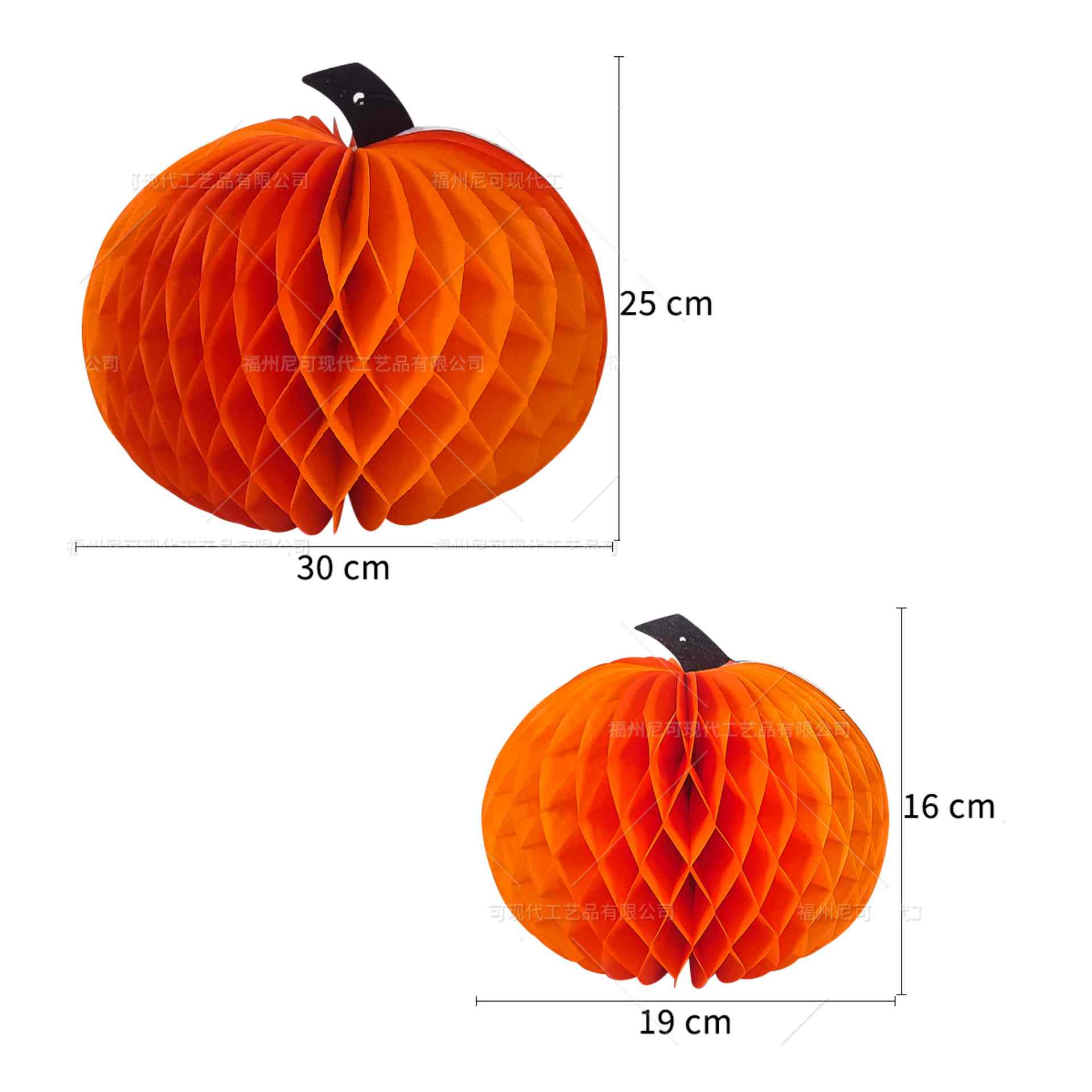 Наборы бумажные украшения "Тыква" 3 шт, 30х25см, 19х16см — сочный и праздничный набор для оформления стола, фотозон, витрин и интерьера. Поставляется в сложенном виде, легко раскрывается в пышную объёмную форму.
