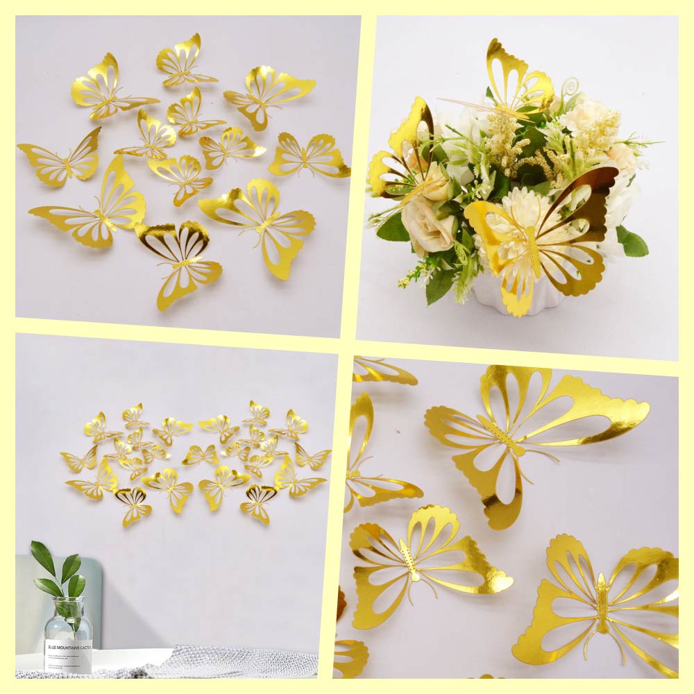 Наклейки Бабочки № 10 бумага металлик 12 шт золото