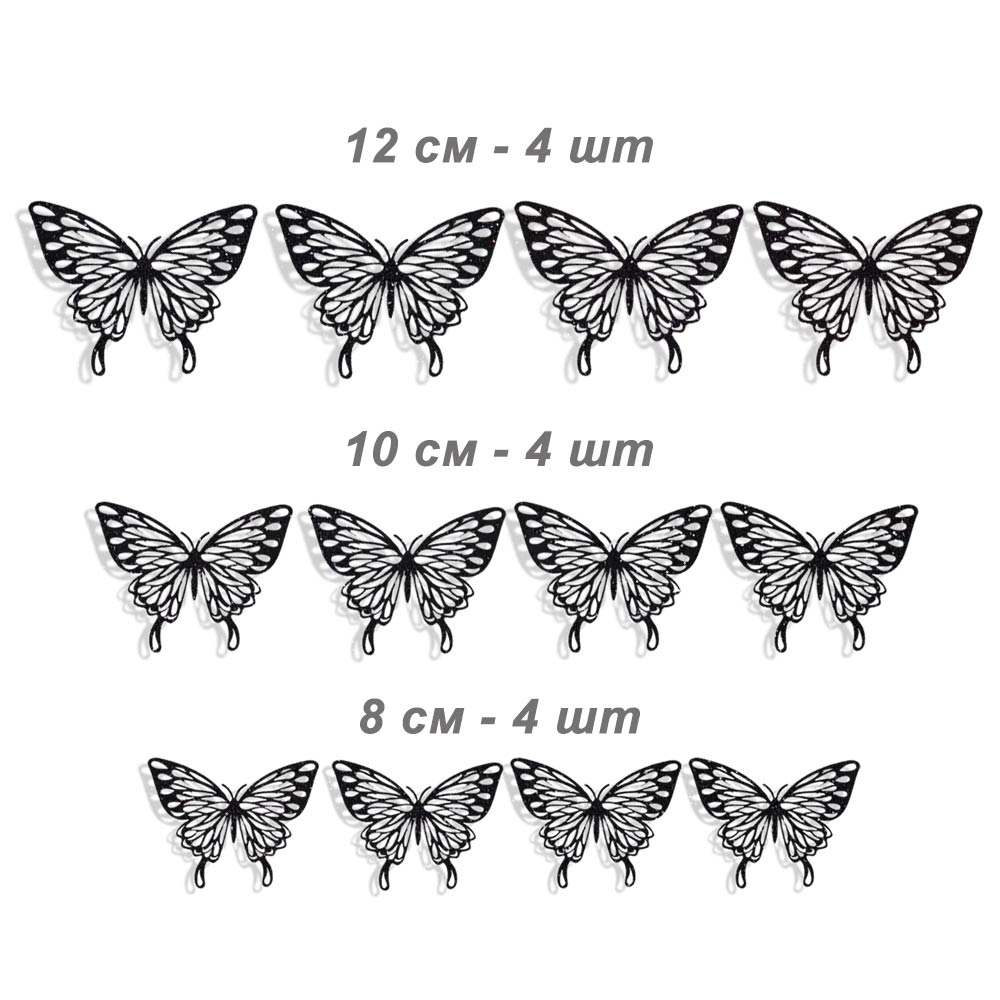 Наклейки Бабочки № 12 бумага перламутровая 12 шт черный