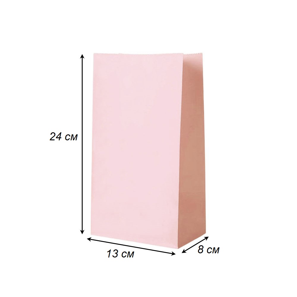 Подарочный пакет из крафтовой бумаги пастельного оттенка с белыми бумажными ручками и белой внутренней стороной.