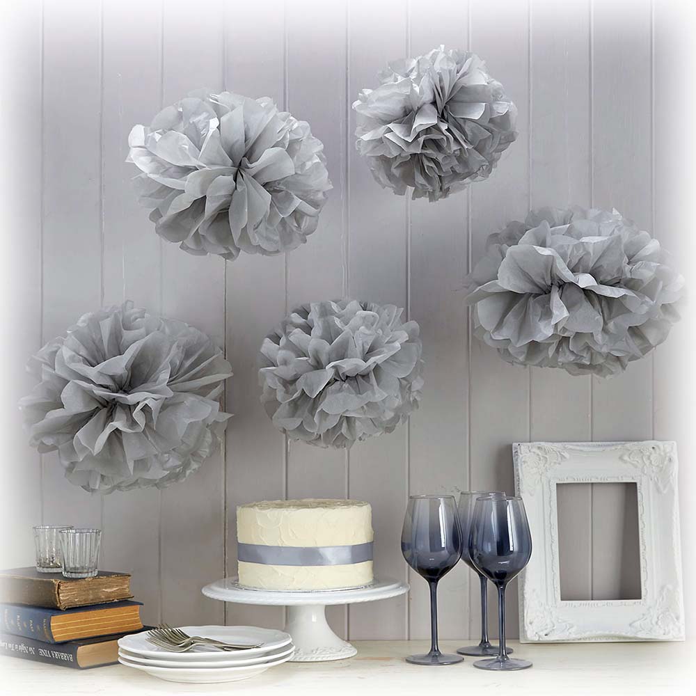 Помпон из бумаги 20 см серебро