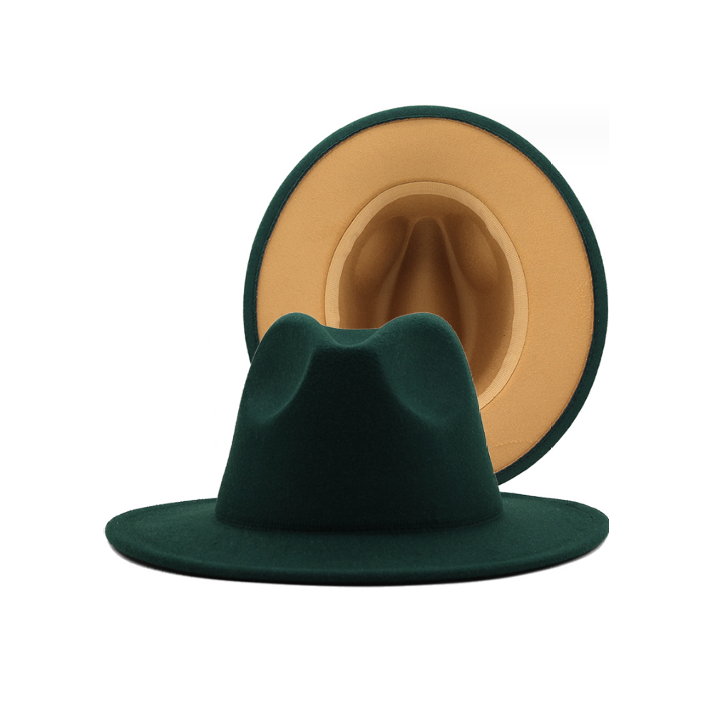 Шляпа Федора фетровая 2 цвета, темно-зеленый+песочный