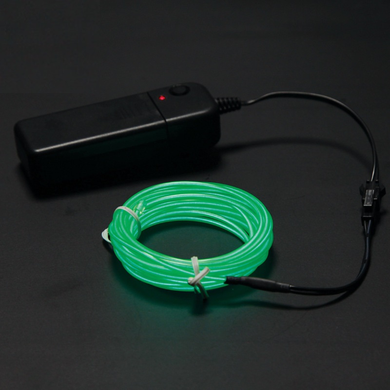 В комплекте с EL проводом, длинной 4 метра,  идет бокс с питанием от батареек, что позволяет его применять где угодно, даже на улице.  Работает от 2-х батареек 2АА (батареек в комплекте нет).