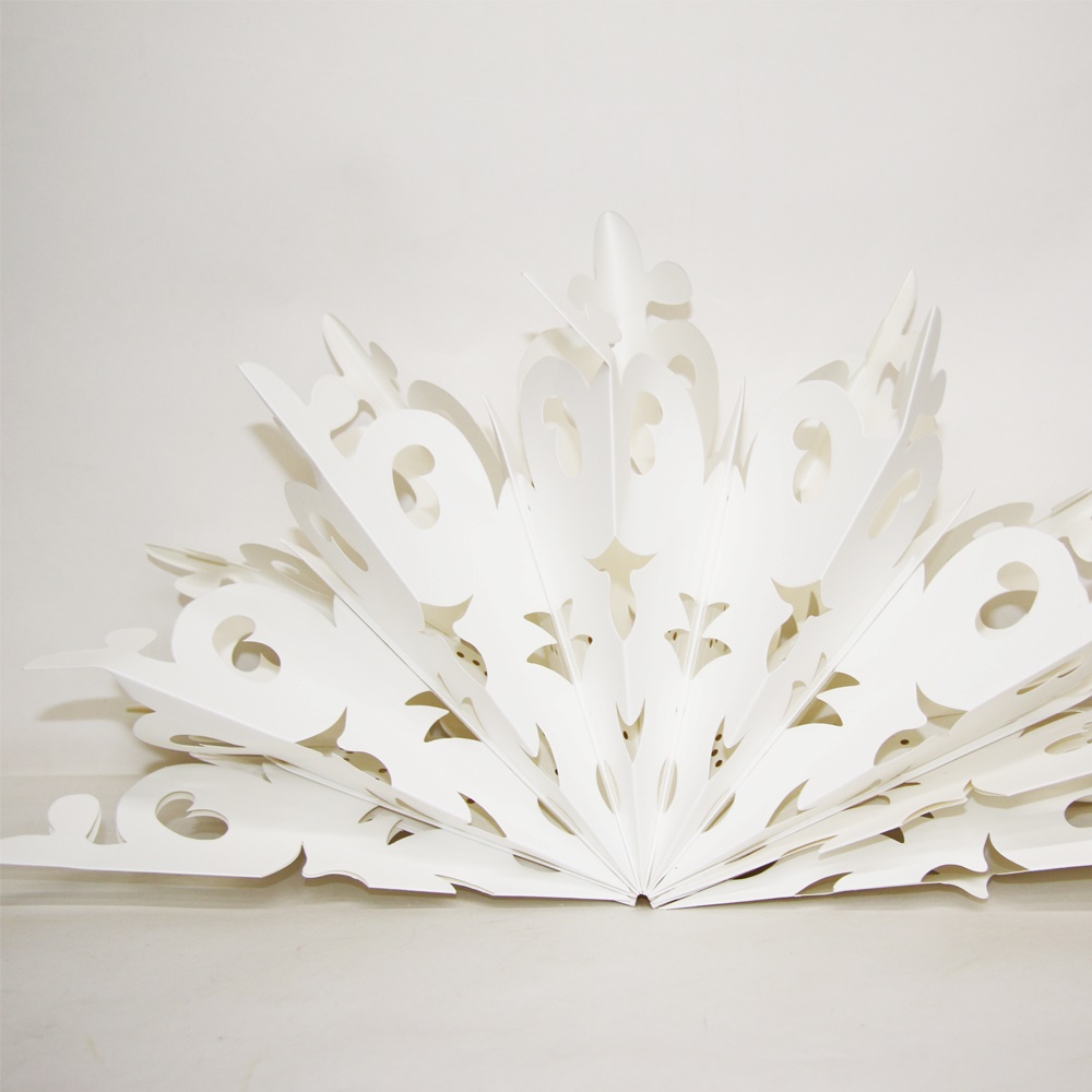 Снежинка на липучках размером 60 см, белого цвета, изготовлена из высококачественной бумаги.