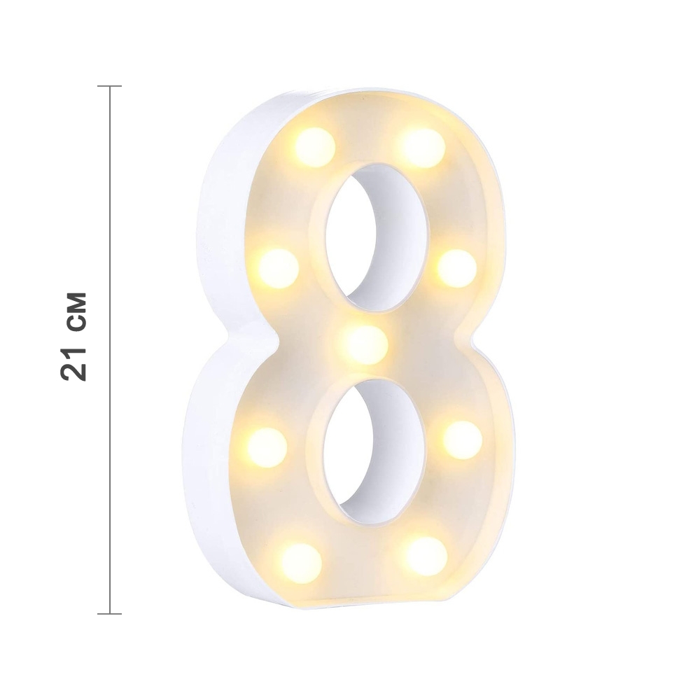 Цифра 8 светодиодная 21 см, от батареек , теплый белый