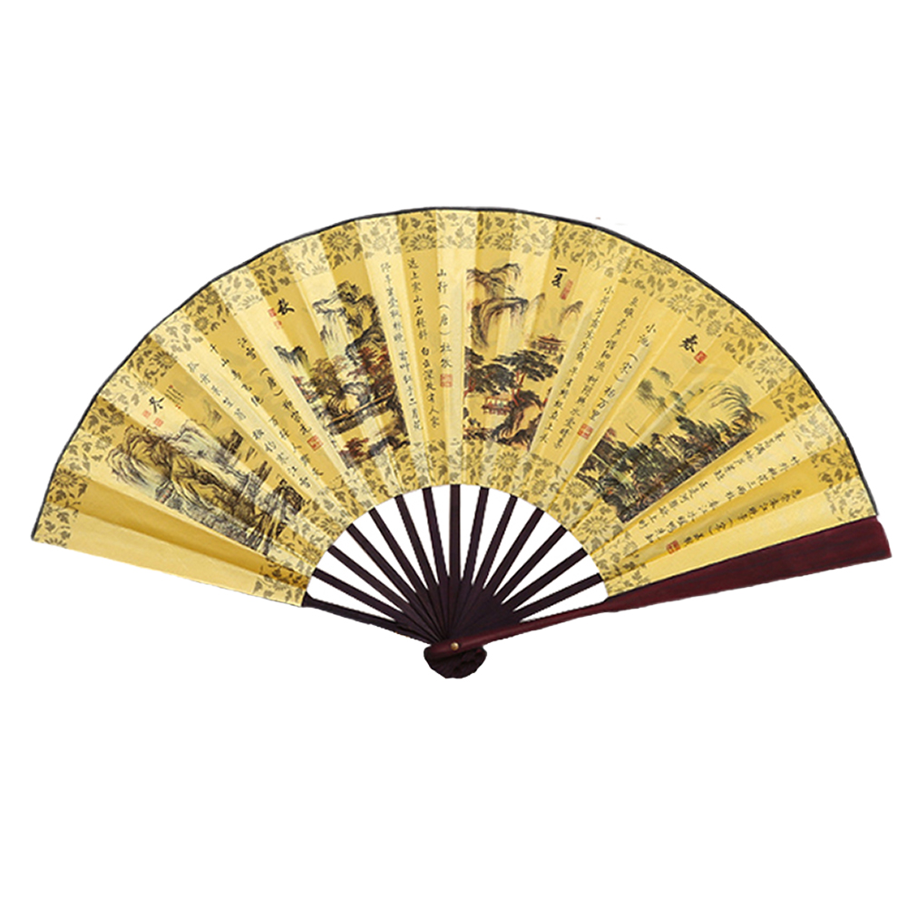 Двухсторонний складной веер для танца. Выполнен из бамбука и плотной ткани.