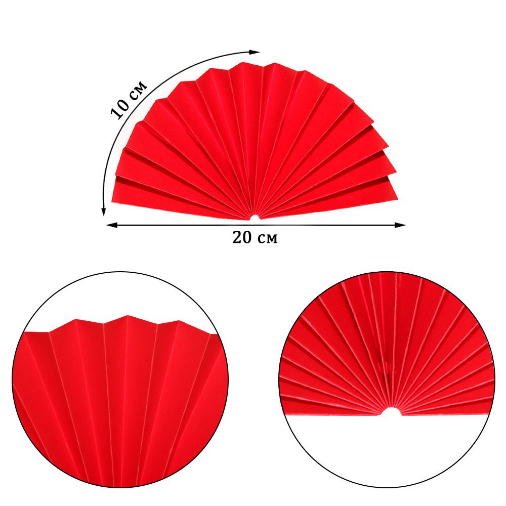 Веер-гармошка 160г/м 20 см, ярко-красный