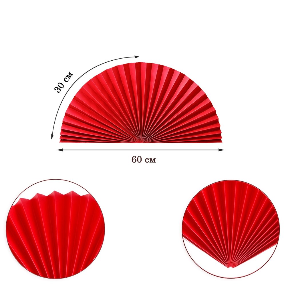 Веер-гармошка 160г/м 60 см, красный