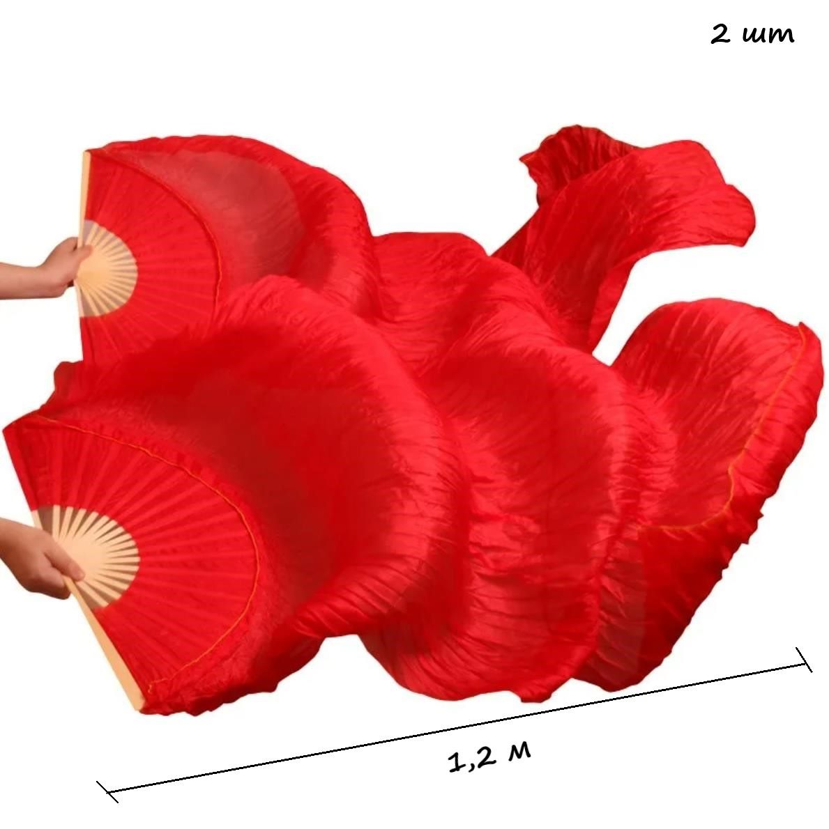 Веер-вейл для танцев 2 шт 57см х 1,2м №4, шелк, красный