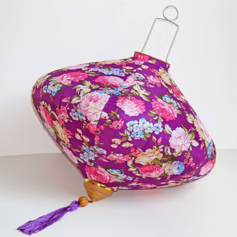 Это традиционные подвесные фонарики ручной работы, изготовленные из шелкового материала с элегантным цветочным узором, которые делают его изысканным и красивым.