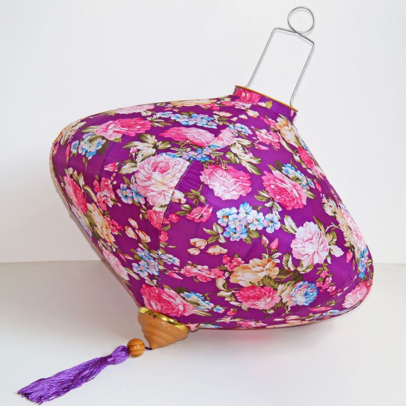 Это традиционные подвесные фонарики ручной работы, изготовленные из шелкового материала с элегантным цветочным узором, которые делают его изысканным и красивым.