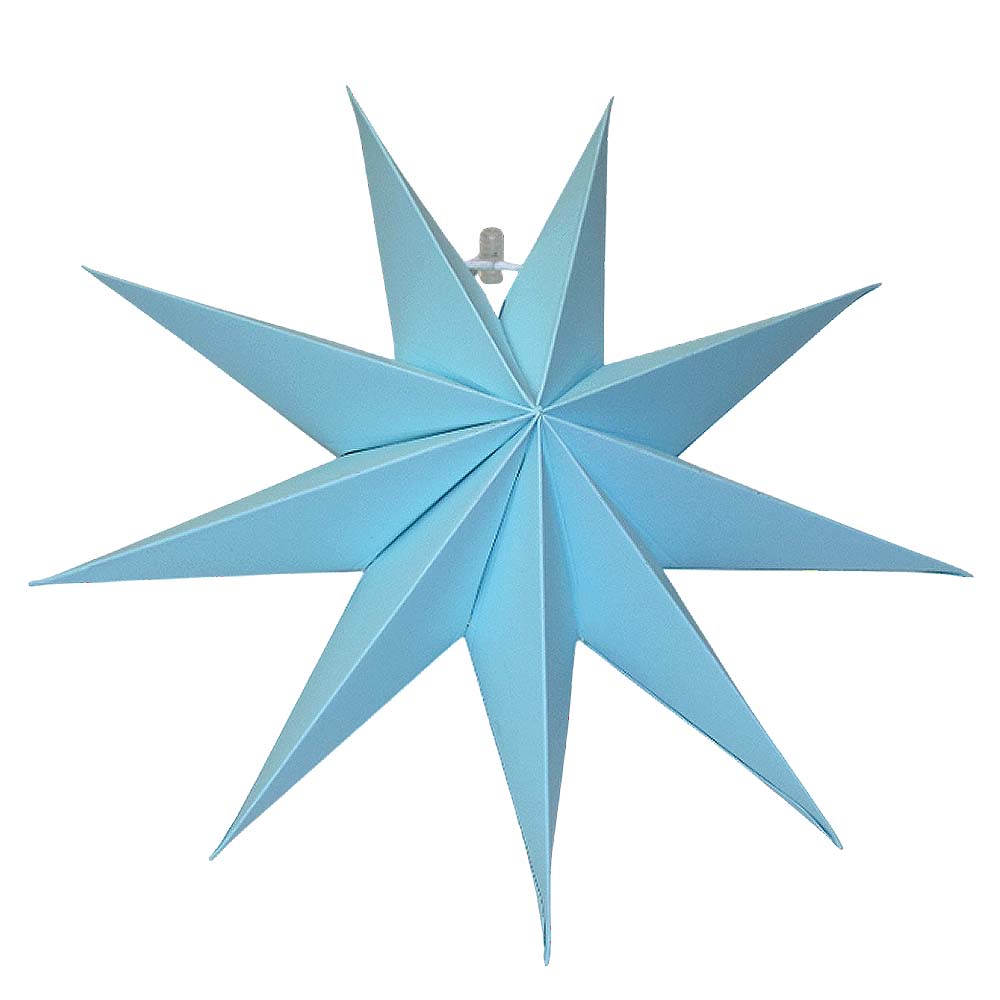 Объёмная декоративная звезда из картона диаметром 30 см с 9 лучами. Оснащена встроенным шнурком для подвешивания. Поставляется в компактном сложенном виде и быстро собирается: специальный шнурок при затягивании придаёт изделию объём и фиксирует форму. После сборки звезда остаётся устойчивой без дополнительных креплений и может использоваться многократно.