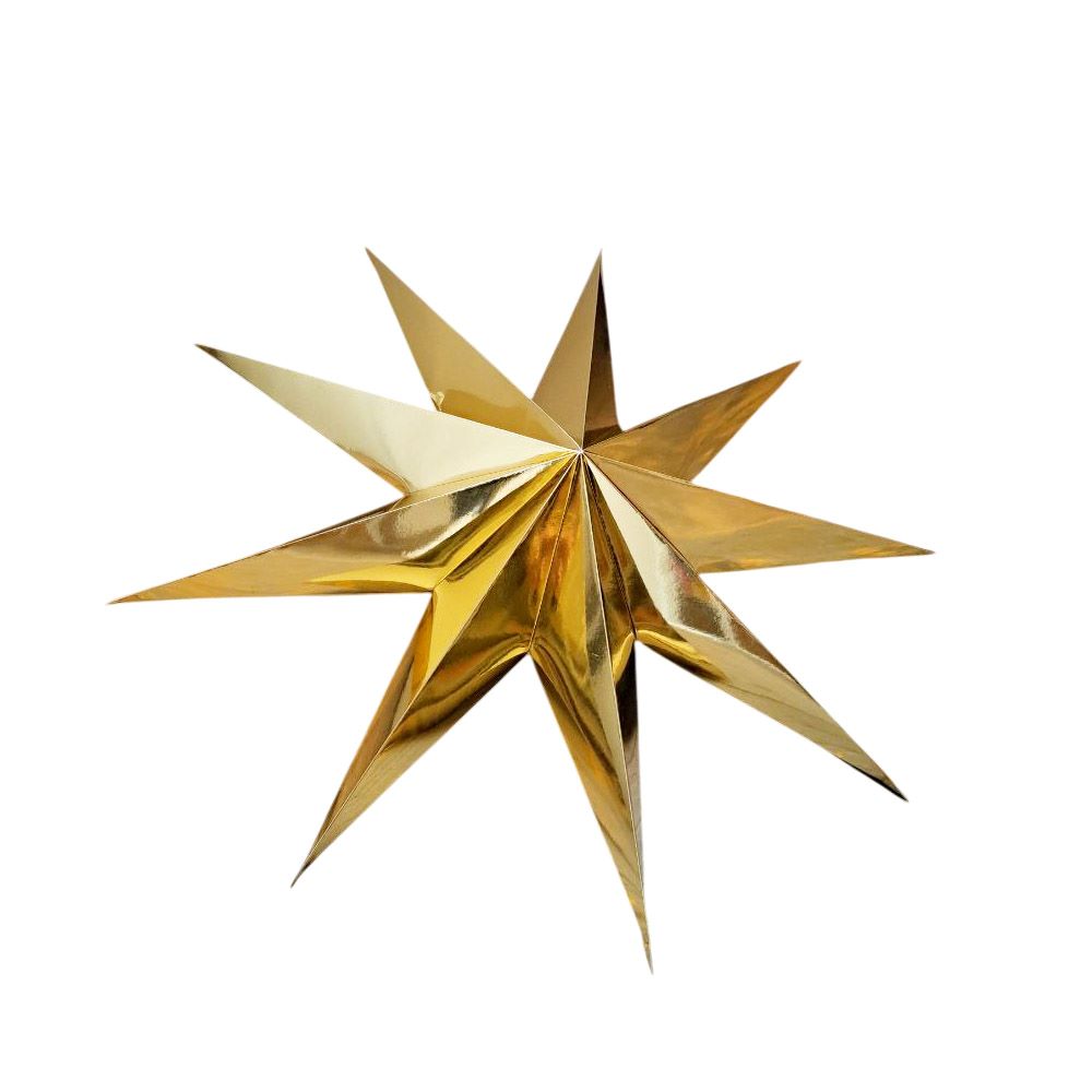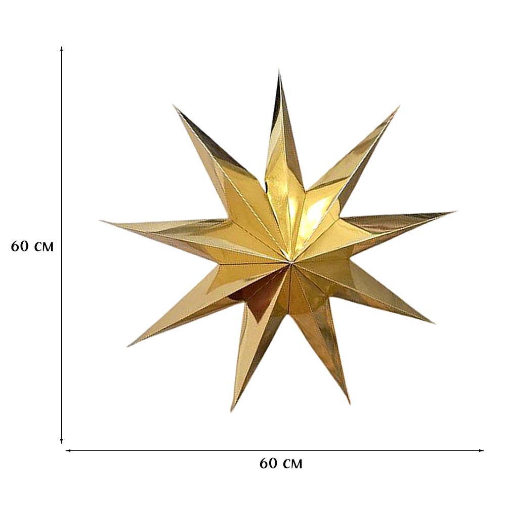 Объёмная девятиконечная звезда 60 см — декоративный элемент для интерьера и праздничного оформления. Лёгкая интерьерная звезда из картона хорошо держит форму и создаёт выразительный объём. Поставляется в сложенном виде, в комплекте шнур для фиксации объёма и подвеса.